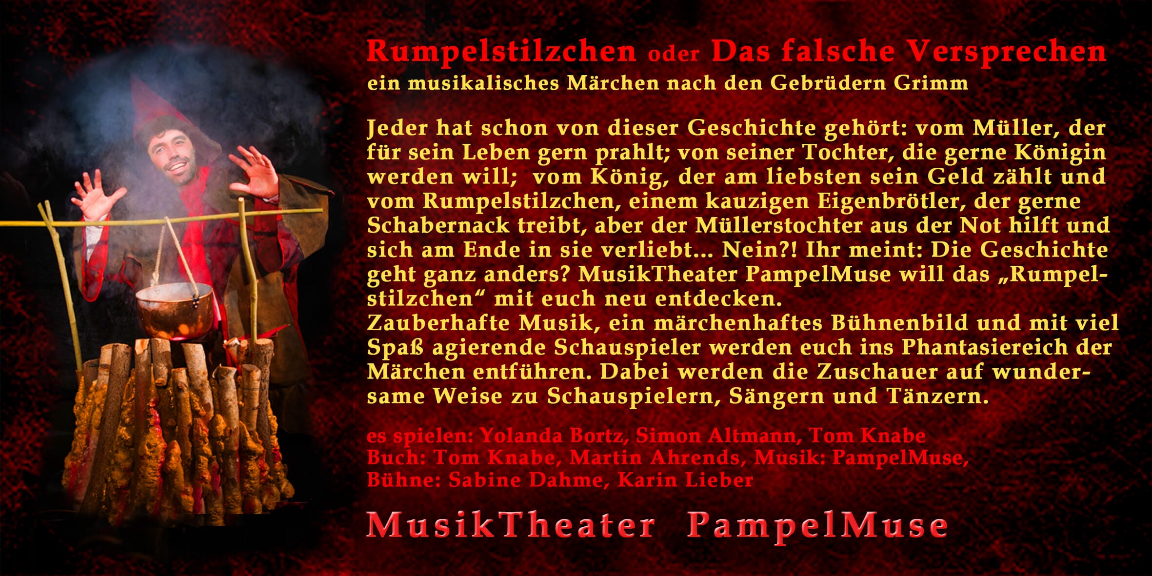 Ach wie gut, dass jeder weiß: Am 10. Dezember kommt das Kindertheater Pamplemuse in den ONC und zeigt: “Rumpelstilzchen oder Das falsche Versprechen”. Diese Truppe ist Kult, Spaß, Entertainment, Schauspielkunst, Musik! Wir laden euch herzlich ein dabei zu sein. Und das kann durchaus wörtlich genommen werden, denn die Zuschauer haben ein gutes Wörtchen mitzusingen und zu tanzen bei diesem Stück! Für die zwei Vorstellungen können sich Kita- oder Schulgruppen/Klassen anmelden. Der Eintritt kostet 5 Euro, bitte vorher anmelden bis 6.12, am besten unter 0331-870719. Pro Vorstellung haben wir 80 Plätze zu vergeben.