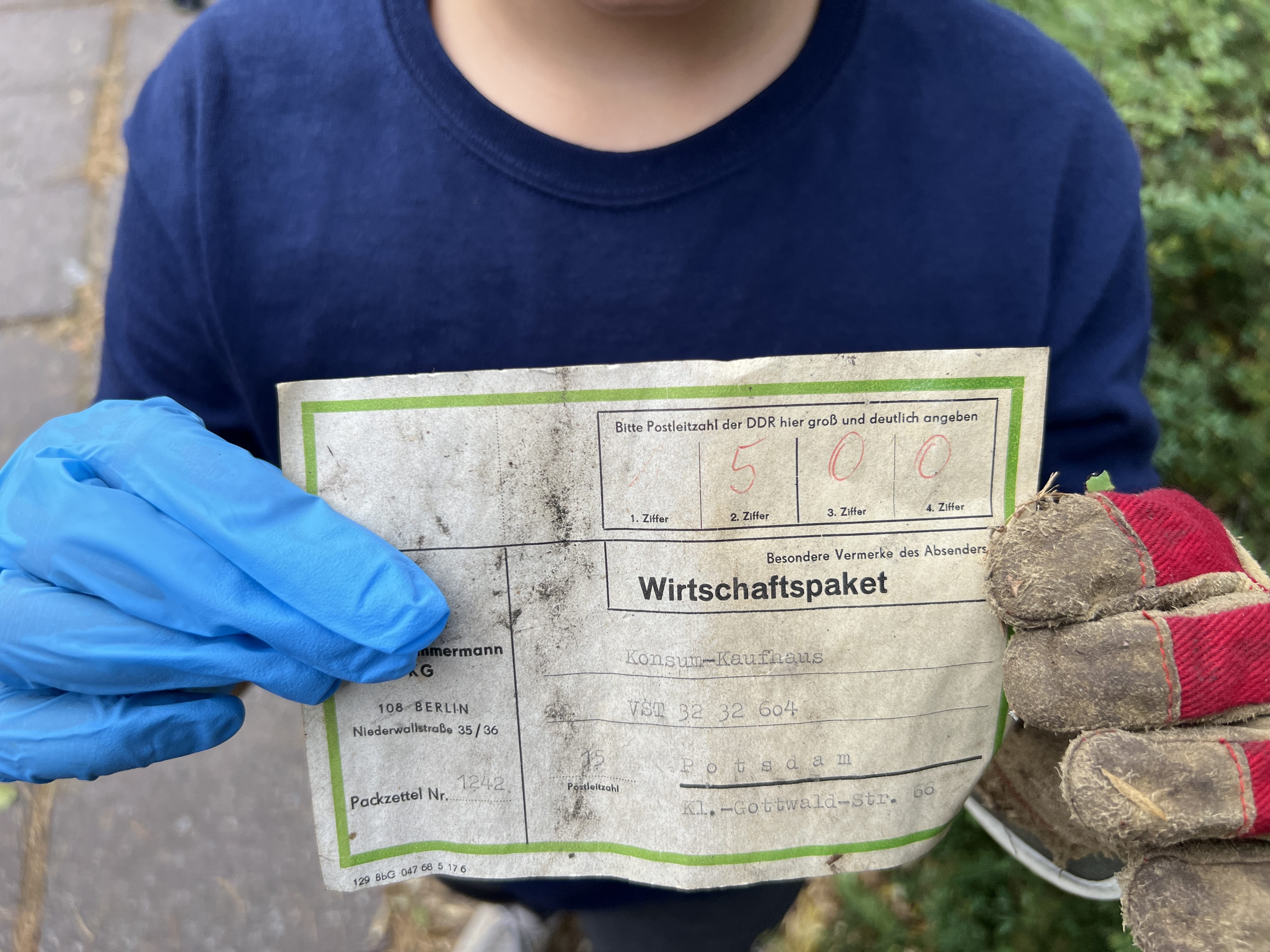 Am 26. September haben kleine Helden in ganz Waldstadt zum 2. Mal in diesem Jahr fleißig Müll gesammelt. Dabei werden jedes Mal ein paar interessante Dinge zu Tage gefördert. Dieses Mal kam nebst einem Kuschellöwen auch ein Stück Zeitgeschichte zum Vorschein – ein DDR Packschein für ein Wirtschaftspaket, das im Konsum abgeholt werden konnte. Die Kinder fanden das sehr interessant und lernten so ein Stück DDR Geschichte kennen.